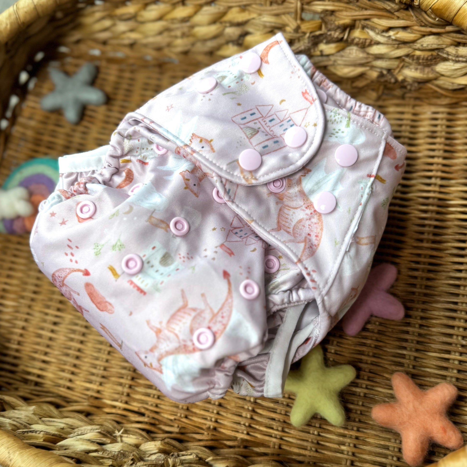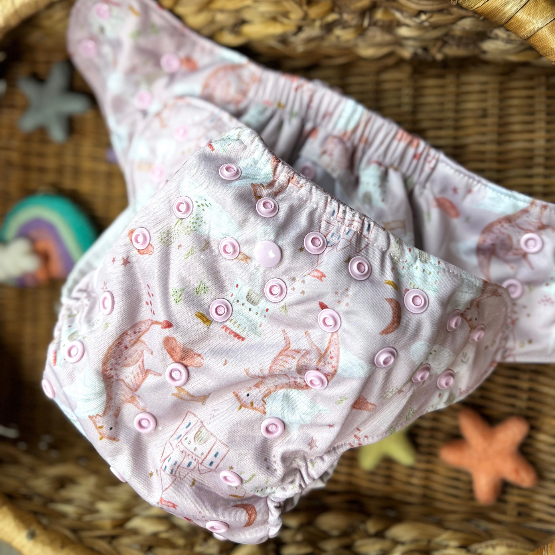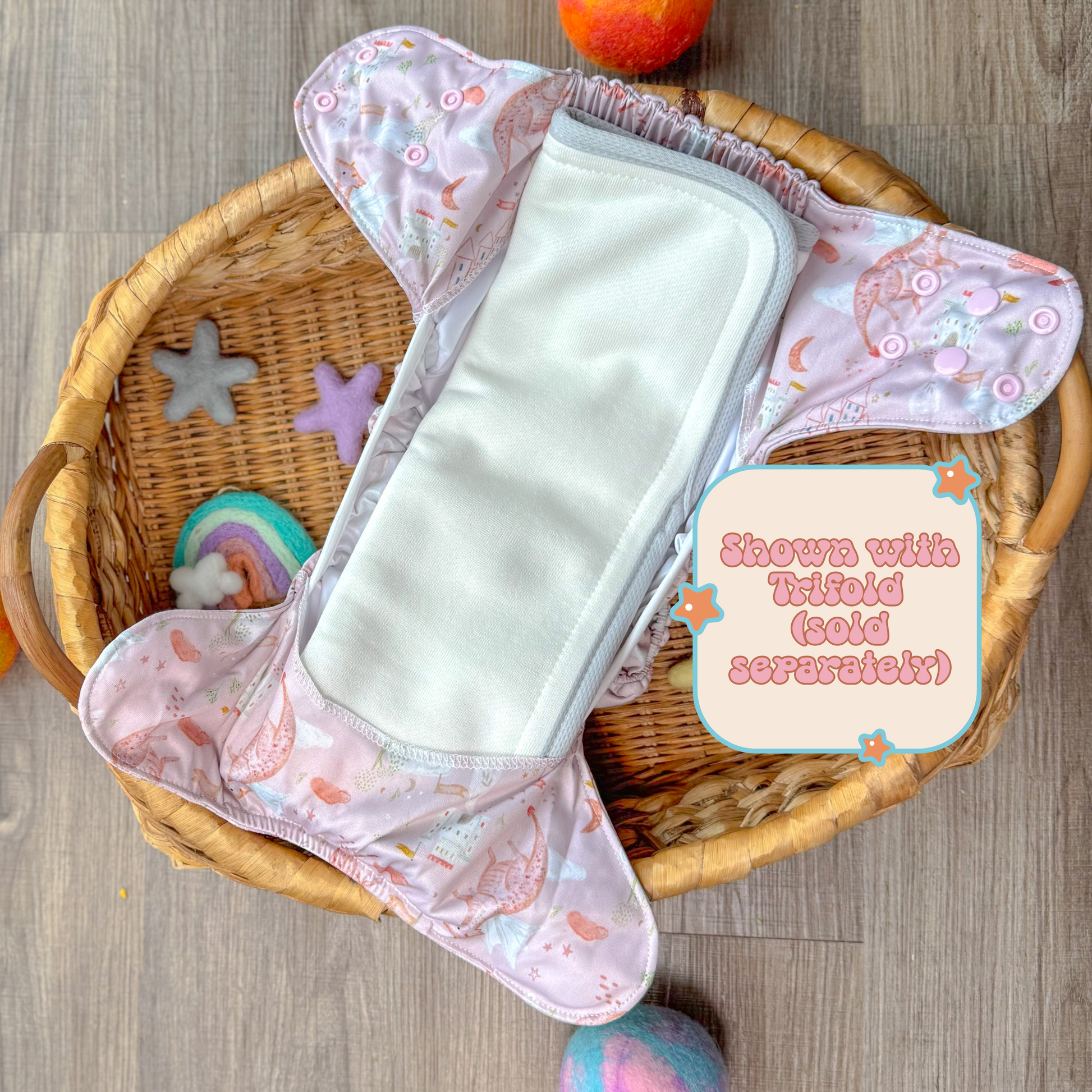 Made with environmental-friendly RPET PUL Layer to prevent leaks - Tummy Panel - great for babes who sleep on their tummies, prevents wicking into clothes or sheets.