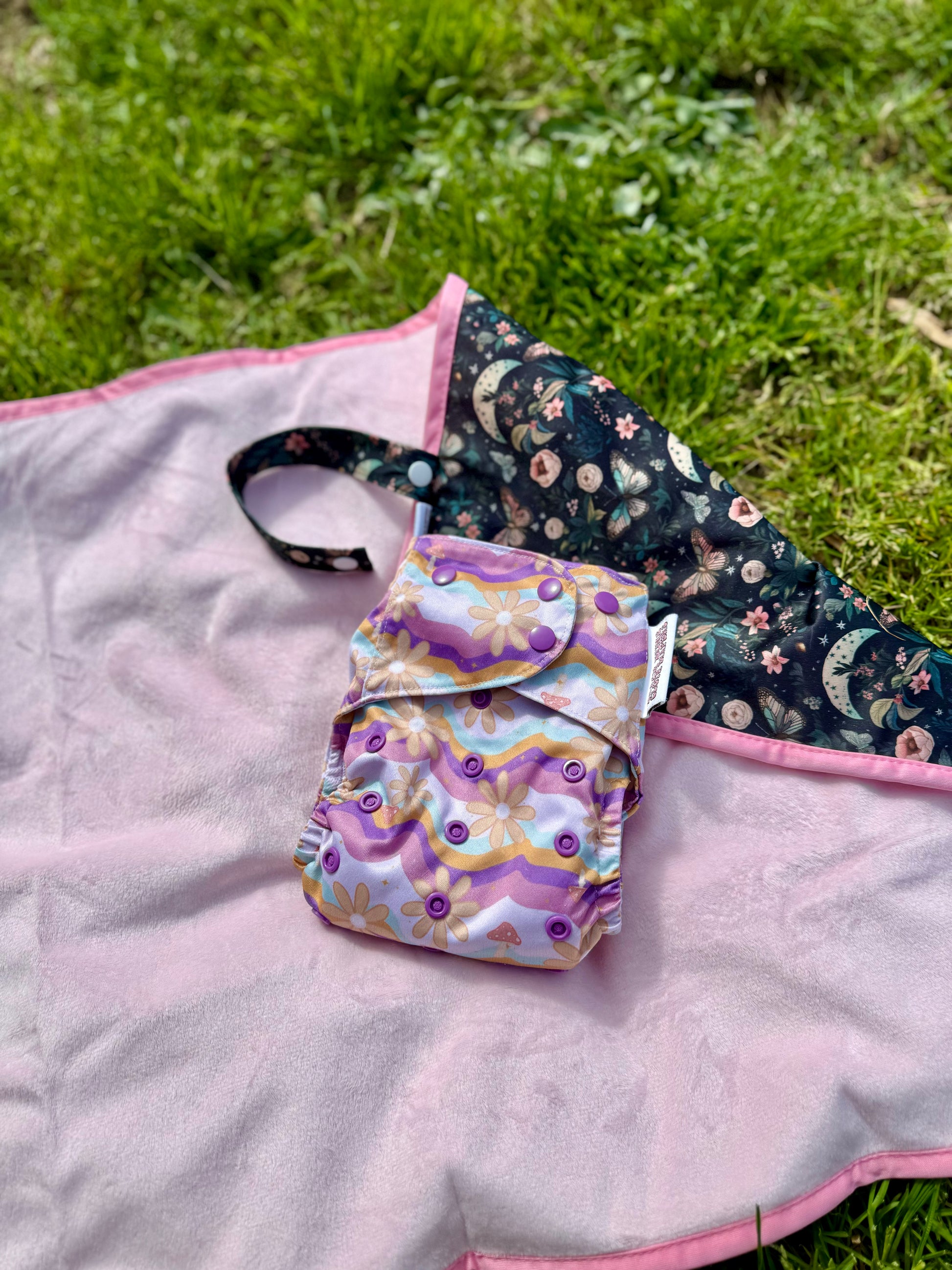No sweat - all our Beach Buns water-resistant products are safe to machine wash and dryer-friendly set to low or no heat. So it's super-simple to zap your change mat in the wash with your nappies during washing days. We suggest stocking up on two change mats, so you can alternate with ease. Excess water can cause leaking, so wring out or give wet items time to dry before they go in your large hanging wetbag. This wetbag is water resistant, not waterproof.