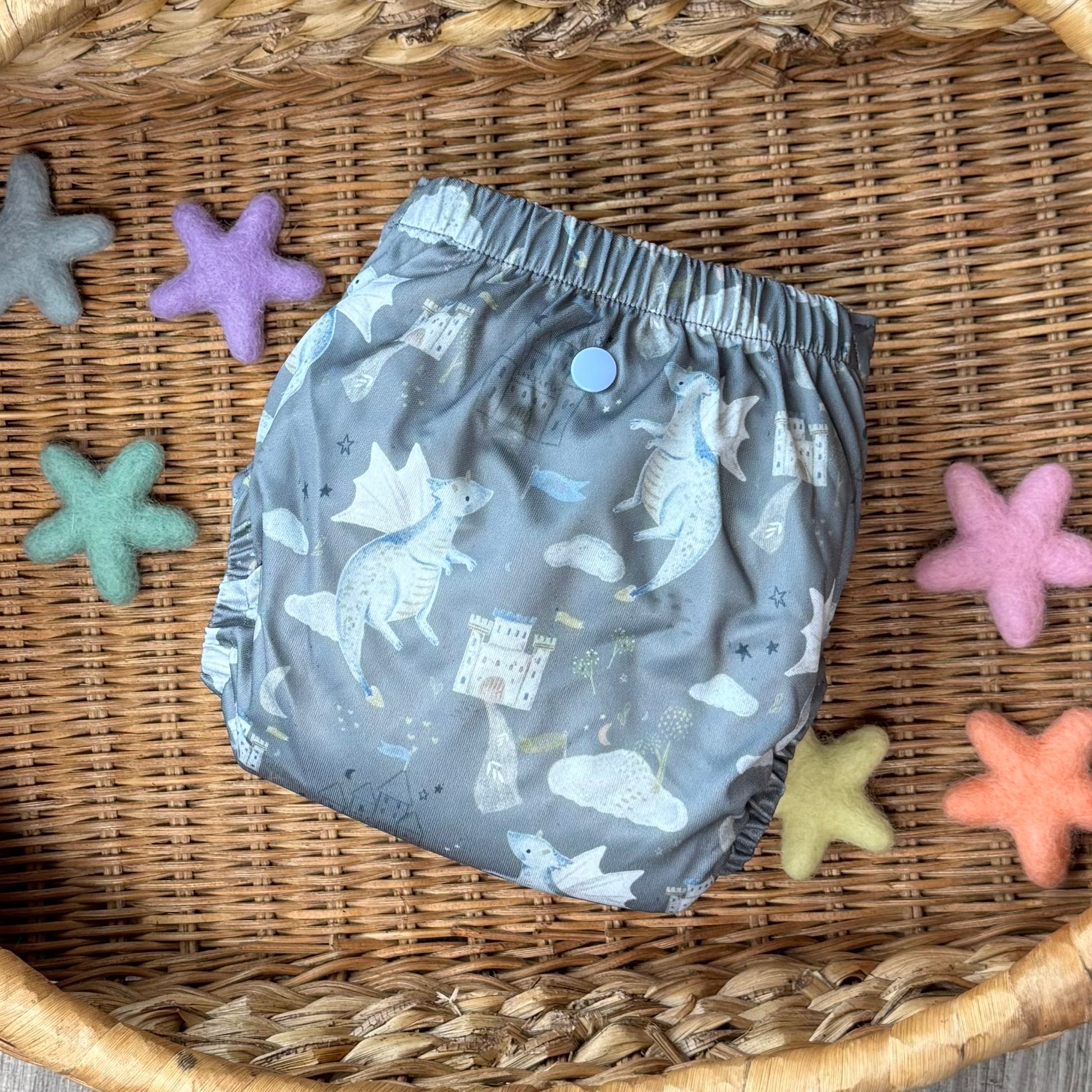 • Center snap - our inserts snap into this snap for less movement and also helps to find the middle of the waist snaps