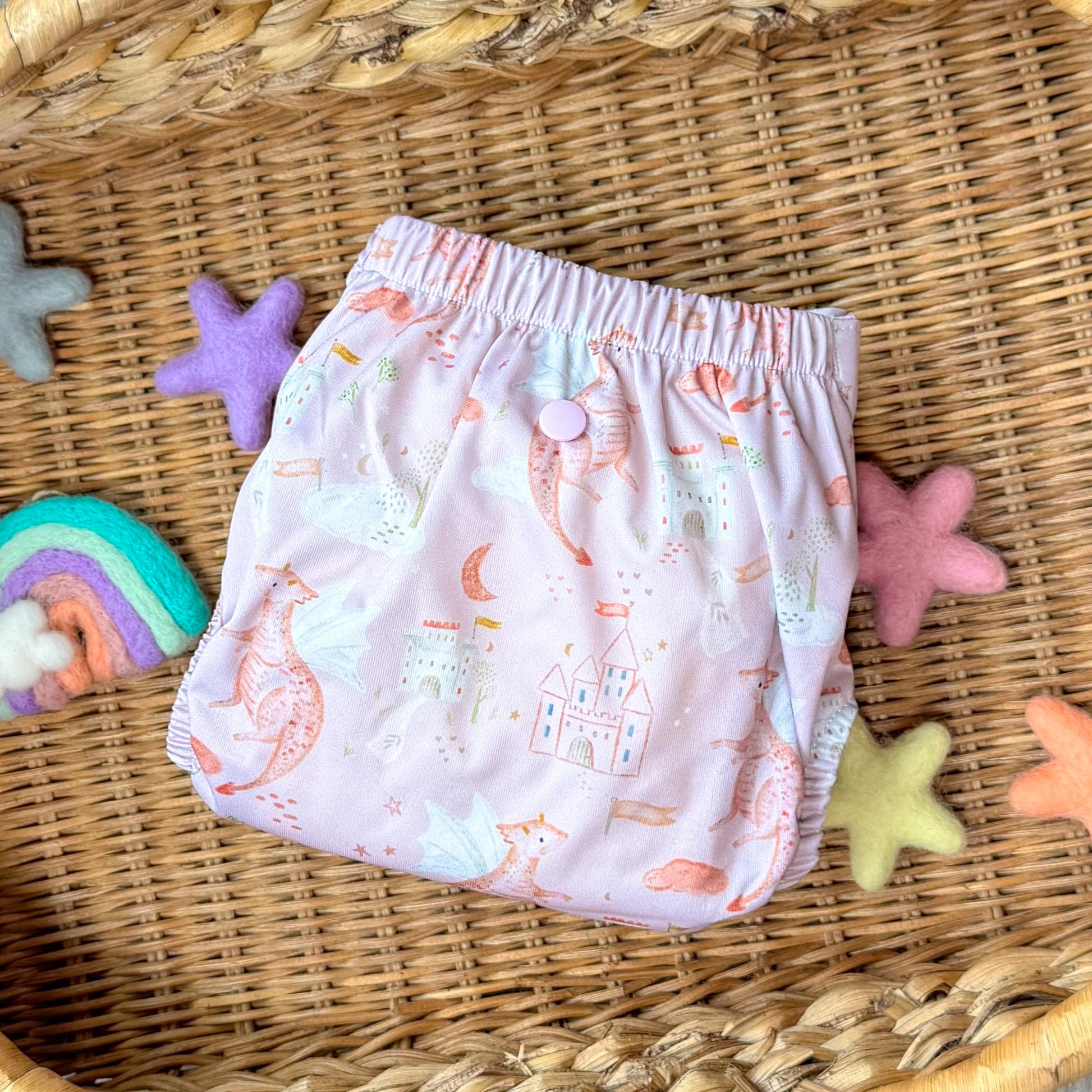 • Center snap - our inserts snap into this snap for less movement and also helps to find the middle of the waist snaps